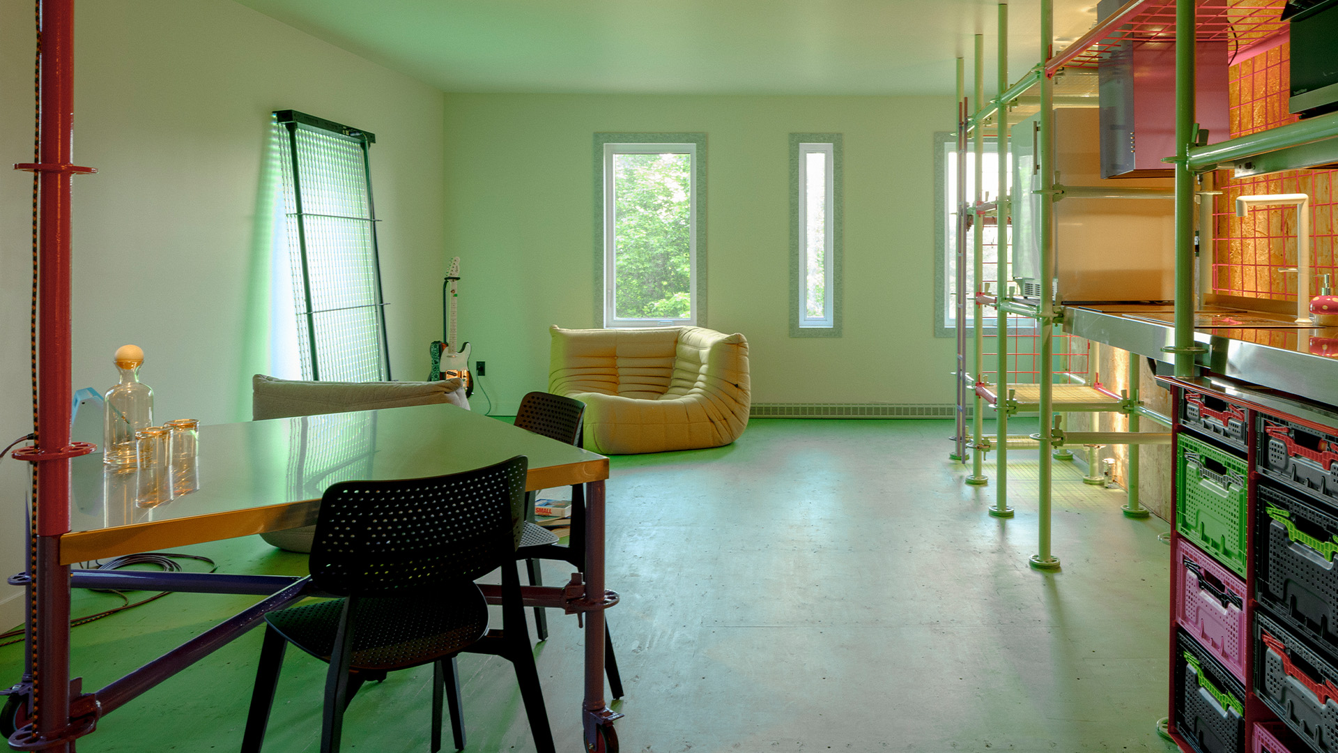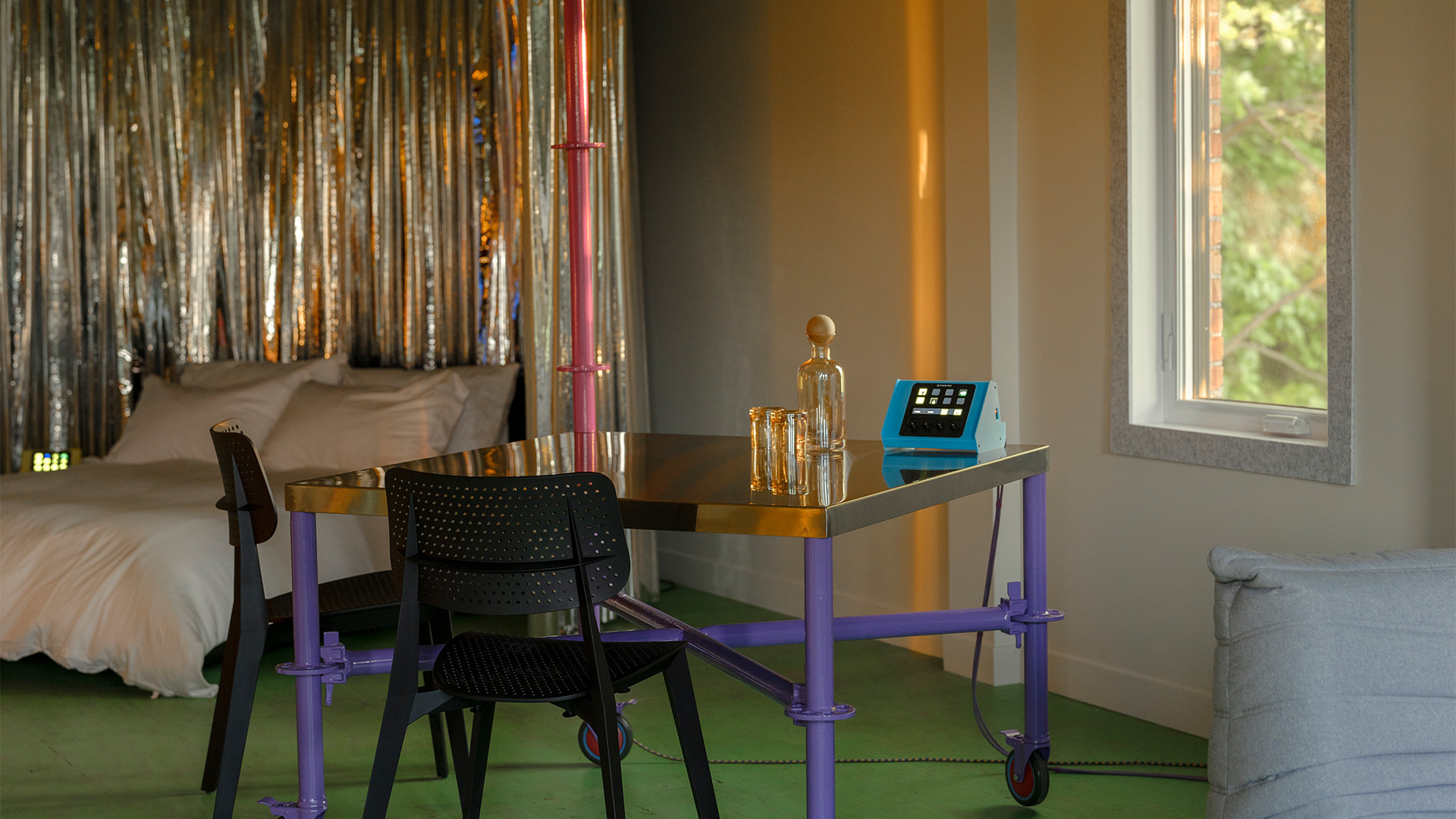 Perched on the 2nd floor, this loft features a Queen bed enclosed by a circular curtain. The space includes a fully-equipped kitchenette, a rainfall shower, and a private washroom. Between the comfort and the panoramic views of the Basilica and the horizon, the space becomes a private observatory where the mind drifts.